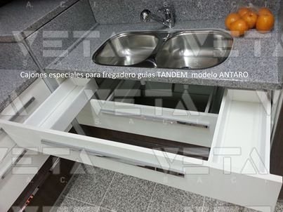 Ahora, observá nuestros cajones Antaro. Estos cajones eran una exclusividad europea hasta hace poco, pero ahora nosotros podemos ofrecerte este lujo aqui en Paraguay. Estos cajones son fabricados con laterales de metal el cual posibilita menos peso y más agilidad en el manoseo de los mismos. El cierre de estos cajones es increiblemente suave y silencioso.